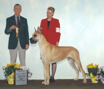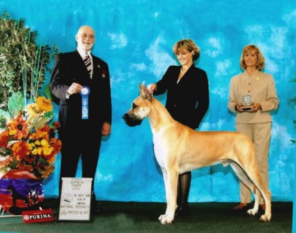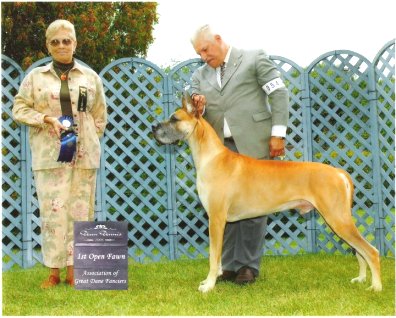K-D Dane's Talk French To Me Monty pictured winning the Open Fawn Class at the National 2005 He has 9 points, Four Best of Breed Wins, & a Group 3 He is owned & loved by Kris & Lynne Hakkila
