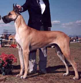 Lincoln's Scarlett O'K-D Dane Ch. Von Raseac's French Dandy x Lincoln's April of Fair Oaks Bred by Clair Lincoln, Barbara Lewellen & Lisa DeRoulet Dam of Ch.'s Savannah, Jake, Farrah, Rachel & Brooke