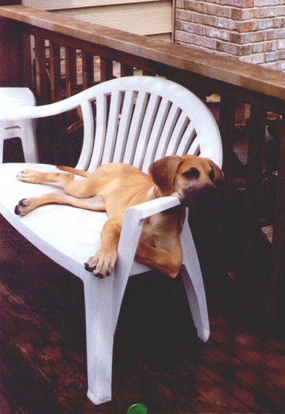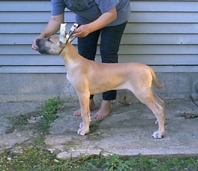 AKC/Int. Ch. K-D Dane's Pardon My French! pictured at 6 1/2 months Paris is now 3 years old & whelped an all fawn litter on May 17, 2005 Paris has tested CERF normal, Cardiac normal, Thyroid normal & Hips OFA "Good"